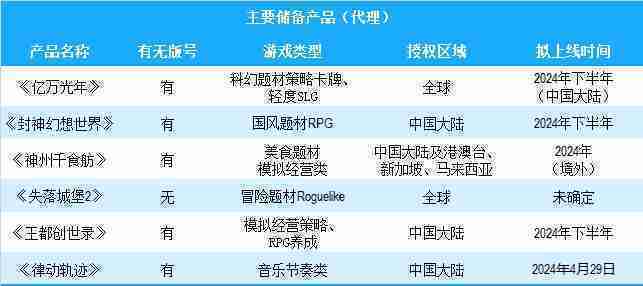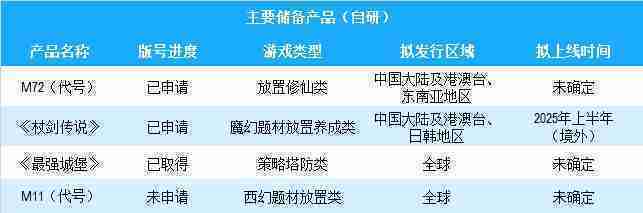 公司有多款储备产品,,,,涵盖放置类、、策略类、、、RPG、、、Roguelike等多元化游戏品类,,,储备的主要自研和代理产品如下::::